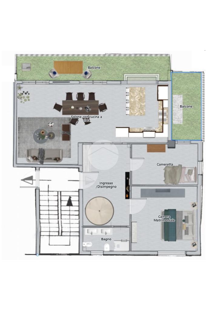 L'appartamento vanta tre affacci ed ha due balconi, che garantiscono una piacevole ventilazione e una vista panoramica. Il vero gioiello è il terrazzo di esclusiva proprietà di circa 196 mq attrezzato, dotato di un locale tecnico di circa 14mq , a completare i confort di questa soluzione è l'impianto fotovoltaico, che rappresenta un valore aggiunto in termini di risparmio energetico.